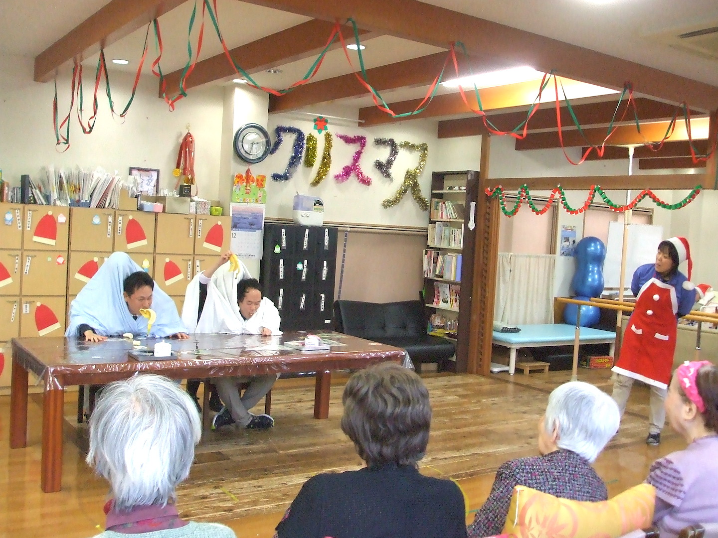 職員の石田さんの祖母が、わざわざ駆けつけて下さり、”演劇”を披露して頂きました。職員も利用者様に大変好評でしたので、またの機会にでもぜご披露して頂きたいですね。