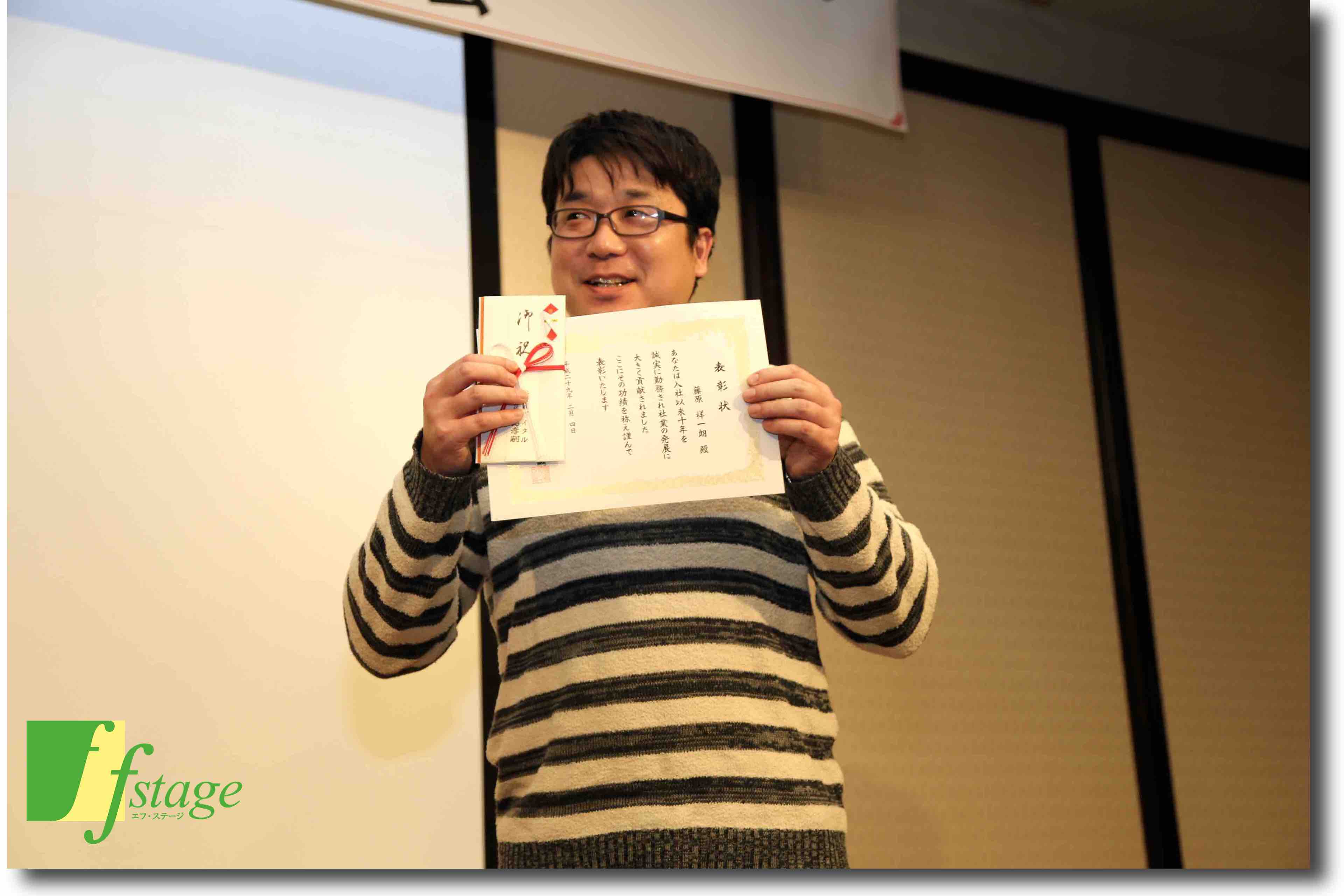 本人が会に出席できなかったため、バイタル総務 福田部長が、式の代役を努めました。